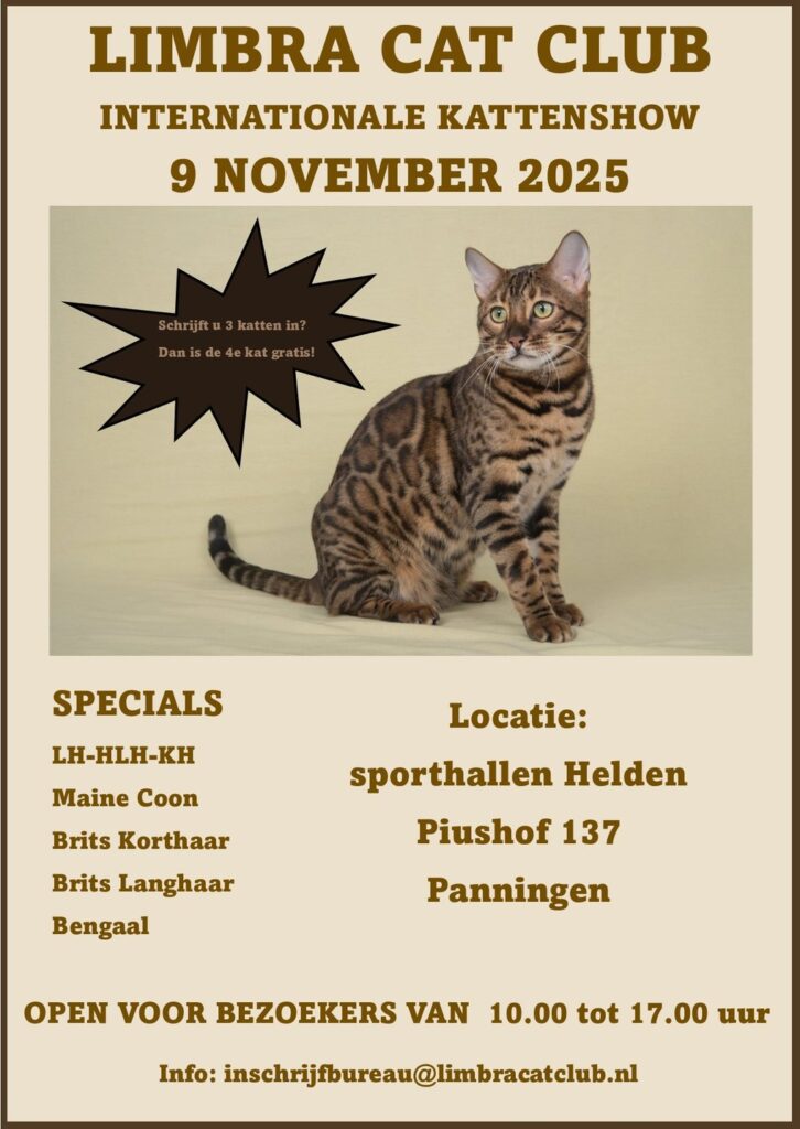 Besucht mich auf der Internationalen Katzenausstellung in Panningen NL.